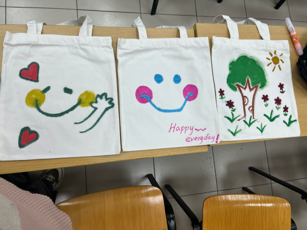 “绘袋”小组中,工作组成员提前为志愿者们发放帆布袋、画笔与颜料,志愿者们在小小的方寸之间尽情发挥着创作力和想象力,为青桐计划太阳村的孩子们绘制了五十只洋溢着温情与暖意的帆布袋。